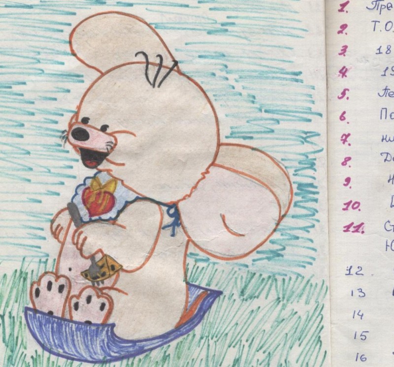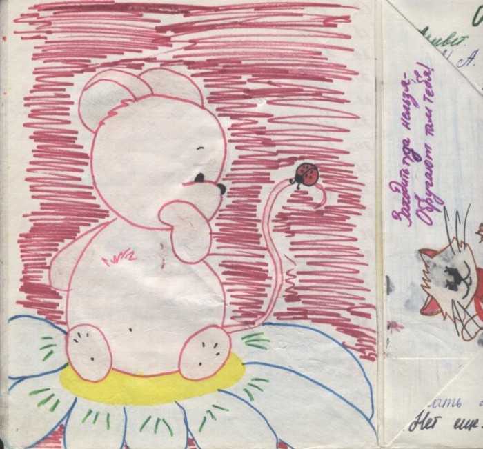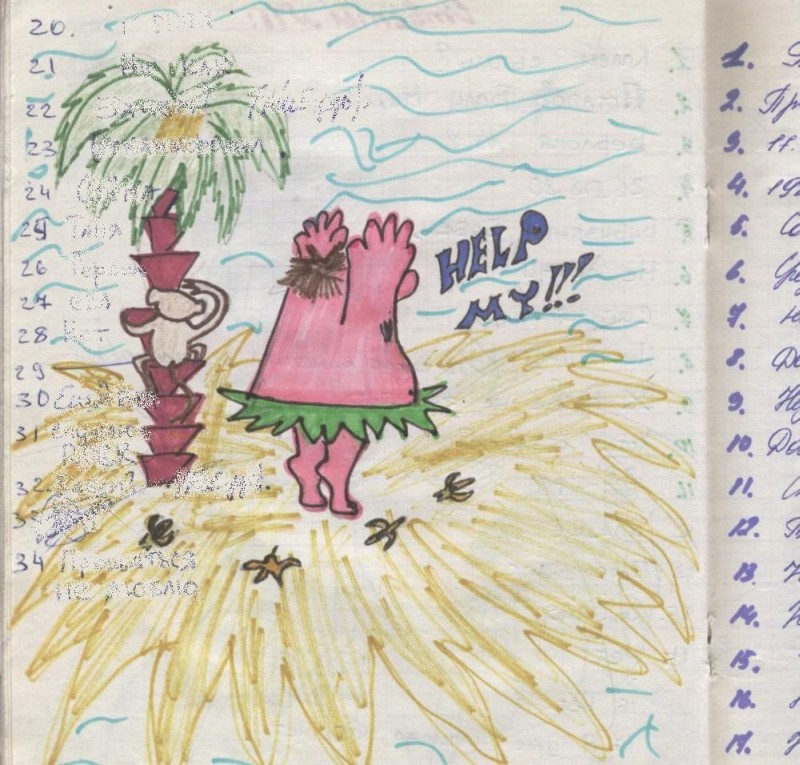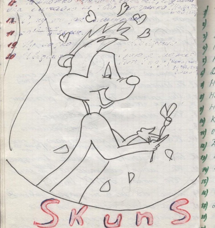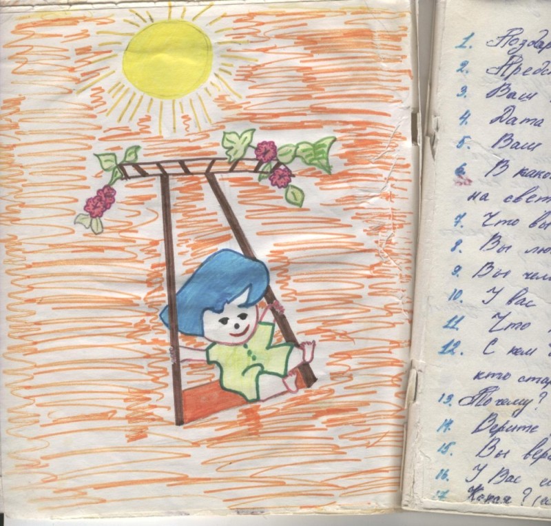 Ребята, не знаю, может я и не в тему, но вдург кому-то будет интересно посмотреть. Наверняка все помнят такую девчачью вещь, как "Анкета друзей" :-)) У меня тоже была.. Ох страшно подумать сколько лет прошло. Короче, почти дедуктивным методом я вычислила, что мне тогда было 12 лет, .. ну и дальше лет до 14. Хорошо, что одним из вопросов был "Дата заполнения анкеты" ) А там: вопросы, ответы, всякая ересь, и рисунки конечно. Сразу оговорюсь, что в детстве я, в основном, срисовывала откуда-нибудь. Открытки, книги, вкладыши от жвачек. Сама рисовала редко... фонтазии видио не хватало... но копиркой никогда не пользовалась :-) Пожалуй буду порциями выдавать: