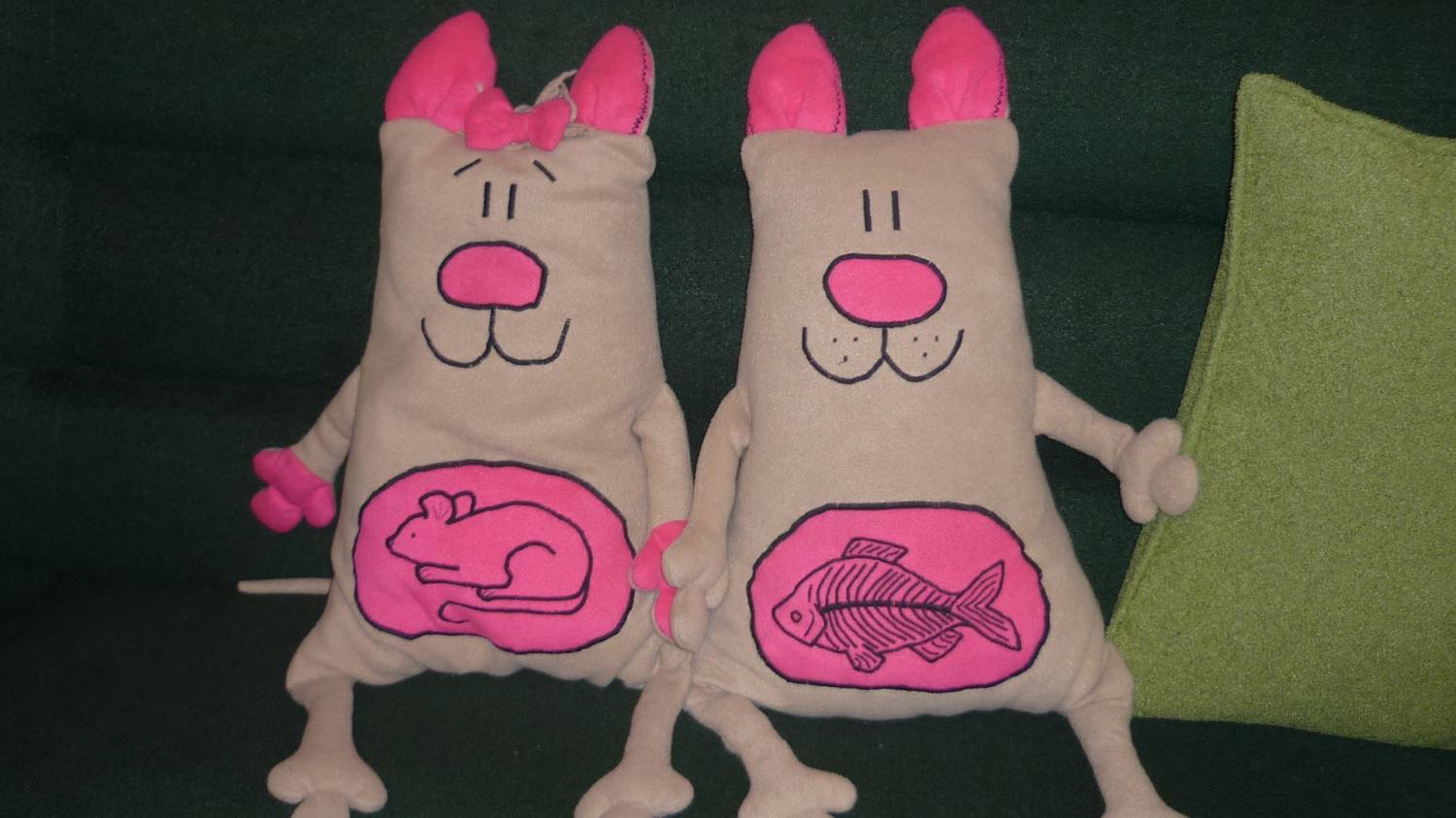 это мои кошки-подушки ,было три ,но все раздарены,у третьей в животике рыба с чешуей,может кому понравится...а выкроек там и не надо,все от души!