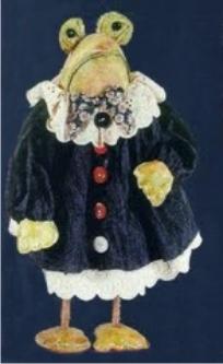 Замечательная бабушка Жабушка шьется из любой ткани. Ручки и ножки - толстенькая веревочка, пропущенная через туловище, на концы которой нашиты ступни и ладошки. Готовую игрушку можно загрунтовать (1 часть ПВА+2 части воды), покрасить и создать вид жабьей кожи, а можно сделать бабушку мягкой. Глаза сделайте из двух шариков, зрачок - из бусинки подходящего размера.Платье скроите из прямоугольника ткани, присборьте его в верхней части, подшейте кружева. Рукава - два прямоугольника ткани нужного размера. Оформите готовую игрушку так, как вам подскажет ваша фантазия.